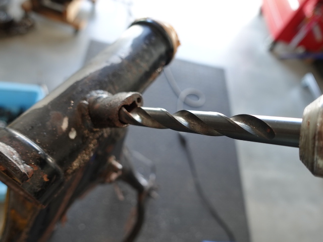 更にドリルを使用してシリンダーの肉厚を薄くして削除してしまいます。穴の大きさより数ミリ細いドリルを使用して削ります。