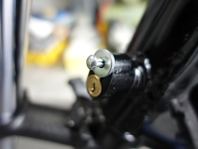 今回はハンドルロックの交換で困っている方もおられるかと思いますので、防犯上問題もありますが、交換のやり方を解説して行きます。ハンドルロックの鍵が無く、あったとしても回らない感じの酷い状態のハンドルロックです。