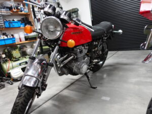 CB400Fレストアベース車両入荷しました。今回の車両は77年モデルのオランダから日本に帰国した車両です。それなりに部品も揃っておりベースとしては良い車両だと思います。エンジンも始動可能。エンジン自体は開けてみないと何とも言えませんが、私的には一度も開けてないエンジンがレストアしやすくて良いです。近頃円安がかなり進んでおり、ベース車両と言えども高価になったな~と感じています。円安の影響から輸入業者さんも輸入を控えているようで、玉数も少ないのが現状。何とかならないのですかね。。。一部の業者さんではCB400Fの在庫がなくなり、高いの承知で輸入を再開すると言っていました。玉数だけでも増えてくれるとありがたいですね。