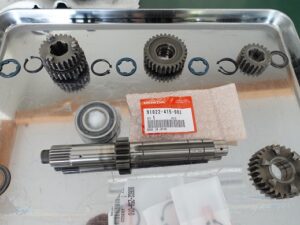 プライマリーシャフトの分解・清掃・部品交換です。全てのベアリングは当然ですが、ドリブンスプロケ内のダンパー交換、セルモーター作動時のワンウェイクラッチ部品の交換です。ダンパーは50年も経過すると硬化しプラスチック状態、大 […]