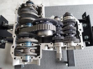 分解・清掃・クランクラッピング処理・消耗品交換などを実施し組み立てが完了しました。ケースを閉める前にクランク、コンロッドの動きや、1速から6速までギヤの入り、ニュートラルの入りを確認、作動点検を実施します。安全確認ではあ […]